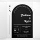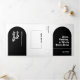 This is an all-in-one Tri-Fold Wedding Invitation that features an elegant and groovy modern minimalist boho design with a retro script font in an arch shape on a black background along with a photo and QR Code. The simplicity of this design adds a touch of elegance to your wedding. It works well with many wedding themes and definitely a great addition to your wedding. Just customize the names and wording in a few easy steps in the text fields and personalize the all-in-one tri-fold invitation card with your photo of the happy couple and replace the QR Codes with yours to give your invitation a nice personal touch. This invitation will save you money to send everything at once. It has a RSVP postcard that your guest can just send it back. Just simply fold each invitation card into the outlined shape -- seal and send to your guests. No envelope is needed for shipping -- just postage.