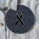 A chrome black style black ribbon awareness decor presented on a midnight blue background for a custom gift to suit any event or occasions. Edit this design with some text if you wish and see your creative efforts come to completion.