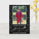 Black Rococo Pattern Congratulations Graduation Photo Card. Trendy white script. Add your favorite photo and personalize it with your grad’s name. Personalize the special message inside or erase it.