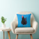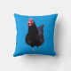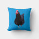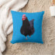 Black Rooster On Blue Background, Throw Pillow