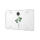 Symbolic, artistically drawn black rose with green stems and leaves on white background. Black rose.