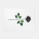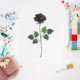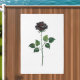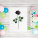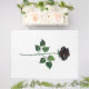 Symbolic, artistically drawn black rose with green stems and leaves on white background. Black rose.