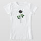 Symbolic, artistically drawn black rose with green stems and leaves on white background. Black rose.