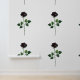 Symbolic, artistically drawn black rose with green stems and leaves on white background. Black rose.