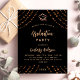 A black background decorated with rose gold stars and a cap. Personalize and add a name, party details and year. The text Graduation and the name are written with modern hand lettered style script.