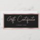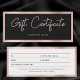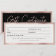 A beautiful modern business faux rose gold pink and black gift certificate voucher with chic script, and business logo. This gift certificate design is ideal for all types of businesses. Simply customize and make it your own.