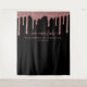 Black and Rose Gold Glitter Drips Wedding Backdrop Tapestry with fashion faux blush pink/rose gold glitter drips on a chic black background with your name and "love never fails" in modern script typography. Perfect for your luxury aesthetic or party! You're dripping in luxury - show it! Please contact us at cedarandstring@gmail.com if you need assistance with the design or matching products.
