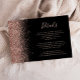 The left-hand edge of this elegant modern wedding details enclosure card features a rose gold faux glitter design. The customizable text combines pale rose colored handwriting, copperplate and italic fonts on a black background. The reverse side features a matching black and rose gold glitter design.