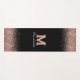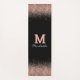 Personalized womens yoga mat featuring a black background that can be changed to any color, a rose gold glitter waterfall overlay, your initial, and name.