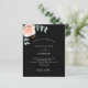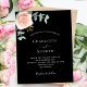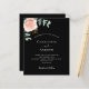 Black background. Decorated with a rose gold and blush pink floral, rose flower and green watercolored eucalyptus leaves, sprigs, greenery and faux gold sprigs. Personalize and add your names and wedding details.