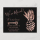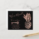 Chic rose gold key and black with hand-drawn rose gold pineapple and elegant typography moving announcement