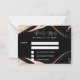 A black background, decorated with rose gold marble veins. Personalize and add the reply by date.