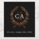 Personalize and add your monogram initials, years of marriage and a text. Decorated with a classic rose gold colored wreath. Black background.