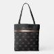 Stylish black with a dark rose gold colored frame. Personalize and add your monogram letters, initials and name. Rose gold colored letters. The name is written with a modern hand lettered style script. The monogram as a background pattern.