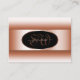 Make a lasting impression with this elegant and quality business card design featuring a rose gold color gradient with an elegant oval rose golden decor frame and border on a black background.