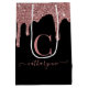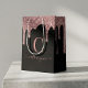 Black Rose Gold Sparkle Dripping Glitter Monogram Medium Gift Bag