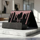 Black Rose Gold Sparkle Glitter Drip Monogram Desk Business Card Holder