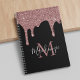 Girly Rose Gold Sparkle Glitter Drips Monogram Notebook with fashion faux blush pink/rose gold glitter drips on a chic black background with your custom monogram and name. Designed by Cedar and String. To personalize further, please click the "customize further" link and use the design tool to modify the design. If you need assistance or matching items, please contact us.