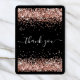 A black background, decorated faux rose gold glitter, sparkles. On front large hand lettered script and the text: Thank You.