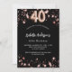 Black rose gold stars 40th birthday invitation