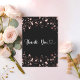 A black background, decorated with rose gold stars. On front large hand lettered script and the text: Thank You with a heart.