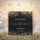 A trendy wedding Save the Date magnet. A stylish black background. Decorated with rose gold faux glitter sparkles. Personalize and add a date, place and your names. Save the Date is written with a modern hand lettered style script with swashes.