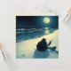 A pretty blank notecard to write yourself or someone else a note on. A serene night on the beach. A lone black rose laying on the sand. A full moon in the sky. Waves crashing on a sandy shore.