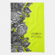 This kitchen towel is ready to be personalized with a name or your own special message. It makes a great custom housewarming gift or hostess gift. This towel features illustrations of roses in black and white in an antique engraving style set against a bright and vibrant electric lime green background.
