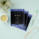 A stylish black background, decorated with royal blue confetti. Personalize and add your names and details.