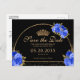 Black Royal Blue Gold Glitter Floral Quinceanera Postcard