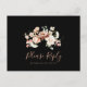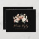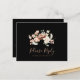 This black royal floral menu choice rsvp postcard is perfect for a modern wedding. The design features watercolor pink, blush, and white elegant flowers with emerald green leaves.