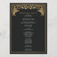 Unveil the magic of your big day! These medieval fantasy wedding programs feature a regal lion surrounded by intricate gold florals and a monogram against a black background, blending elegance with a touch of grandeur. A perfect keepsake for your fairytale celebration! The gold featured on this item is NOT real foil and is printed in flat colors.