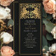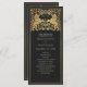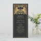 Unveil the magic of your big day! These medieval fantasy wedding programs feature a regal lion surrounded by intricate gold florals and a monogram against a black background, blending elegance with a touch of grandeur. A perfect keepsake for your fairytale celebration! The gold featured on this item is NOT real foil and is printed in flat colors.