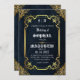 Medieval wedding invitation royal black with gold frame ornate on with a gold ink pour effect (the gold is a digital effect, not real foil) and white medieval calligraphy. Classy and elegant, moody and romantic wedding invitation.