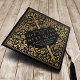 A classy medieval-inspired Graduation Hat Topper with a gold sword and florals with the text "Off to the Next Quest".