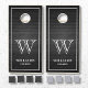 Personalized rustic style black wooden planks background cornhole set with your own custom family name, monogram and established date.