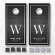 Black Rustic Wood Planks Family Name Monogram Cornhole Set