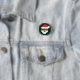 Black Santa Christmas button featuring Santa Claus with a brown skin tone and wearing a red and white suit.