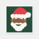 Black Santa Christmas paper napkins featuring Santa Claus with a brown skin tone and wearing a red and white suit.