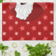 Design with illustration of African American Santa Clause, Christmas holidays design for kids on red seamless pattern background with red stars;
