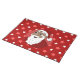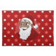 Design with illustration of African American Santa Clause, Christmas holidays design for kids on red seamless pattern background with red and white stars;
