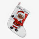 Perfect! Exactly what I ordered! I uploaded a picture of my blue chow, and the screen print was incredible. the back side of the stocking was the red and black checkered print. my puppy's name was also printed on the cuff of the stocking. PERFECT! Highly recommend this product! My puppy's name was screen printed onto the cuff of the stocking, the font was perfect!
