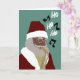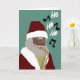 African American Black Santa Claus play8ng the Saxophone on Teal background.