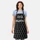 This apron has an art deco design of white half circles connect with lines on a field of black.