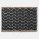 This throw blanket has an art deco design of white half circles connect with lines on a field of black.