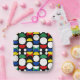 Seamless Repeat Geometric Black Scandinavian Nordic bauhaus Style Mid century Red, black, yellow, blue and green circles and semi circle shapes Decorative Modern Pattern Design on white background