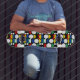 Black Scandinavian Bauhaus Mid-Century Pattern Skateboard