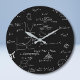 Elegant black and white clock with a math formula patterned background. Great for mathematicians, teachers and home decor. Illustrated and designed by Patricia Alvarez.