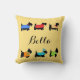 Customize this decorative throw pillow to show your love of Scottish Terrier dogs and personalized with your dog's name or other words in the center. The colorful design is on both sides of the pillow. These whimsy, cute and adorable Scotties are wearing various colorful dog sweater coats or tees and one has a toboggan hat. The colors are red, lavender, purple, yellow, turquoise teal blue, lime green and orange with paw prints, stars, stripes, checks, and snowflake patterns. These whimsical and trendy dogs are original art by Phyllis Dobbs and will melt the heart of a dog lover. The background is yellow to blend with any home decorating color or style. These pet Scotties are both individually and on colorful blocks with borders for coordinating products. All are fully customizable to make it your own!