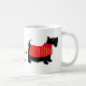 Enjoy drinking your coffee or other favorite beverage from this cute mug with a black Scottie Terrier. Personalize with your dog's name and the words "mom" or "dad" or change to your name or other words. This whimsical black Scottie Terrier is wearing a red turtle neck sweater coat with yellow stripes. The Scottie dog is on both sides of the mug with the name in the center. This cute, cuddly and trendy dog is original art by Phyllis Dobbs and will melt the heart of a dog lover. This Scottie is one of a series of 6 Scotties on coordinating products and all are fully customizable to make it your own!